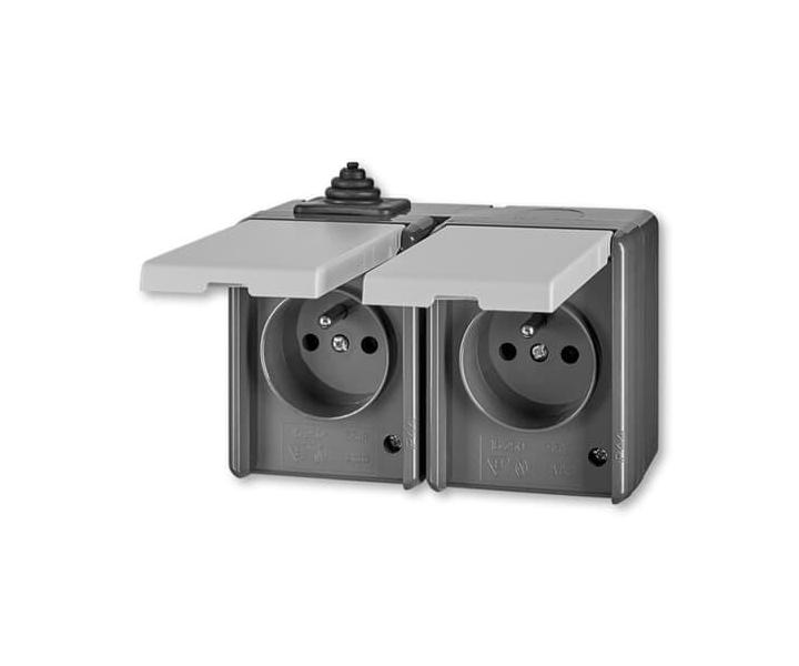 Dvojitá zásuvka, IP44 ABB Praktik 5518-2029 S - šedá