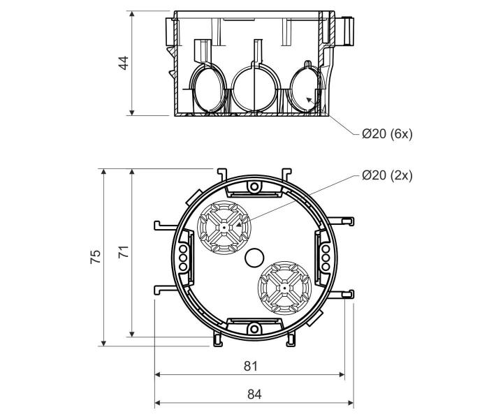 Krabica prístrojová, konfigurácia KA, šedá Kopos KP 67/2_KA