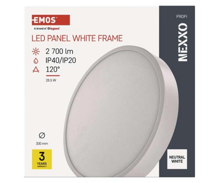 LED prísadené svietidlo Emos NEXXO 28,5W (ZM5155) v bielom kruhovom prevedení s neutrálnou bielou farbou svetla.