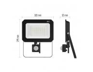 LED reflektor Emos SIMPO 50W (ZS2343) s pohybovým čidlom v čiernej farbe s neutrálnou bielou farbou svetla a krytím IP44.