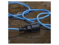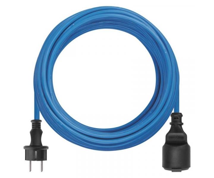 Počasie odolný predlžovací kábel Emos P01410W v modrej farbe o dĺžke 10 m s jednou zásuvkou a krytím IP44.