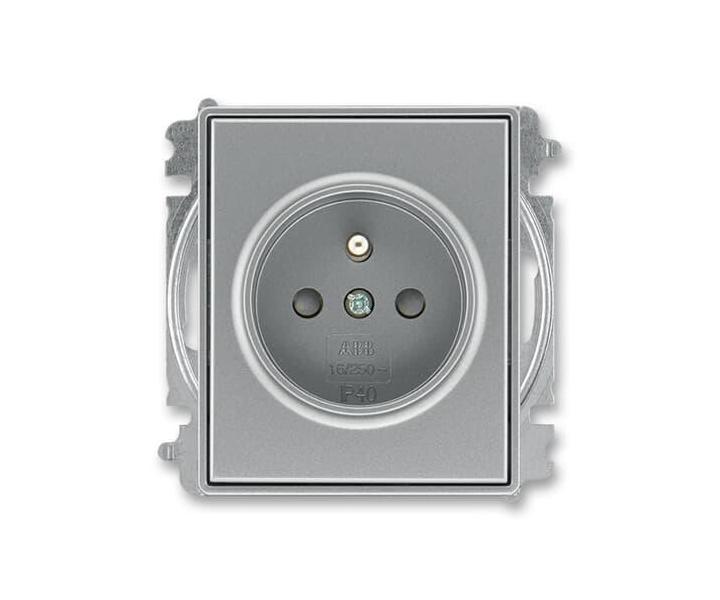 Zásuvka jednonásobná s ochranným kolíkom, s clonami (typ 6619) ABB Time 6619E-A06357 36 - oceľová
