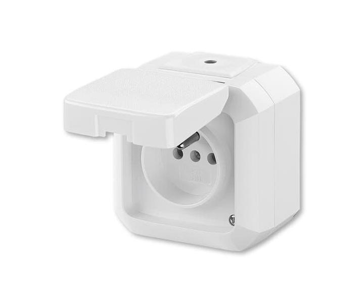 Zásuvka jednonásobná s ochranným kolíkom, s viečkom, IP54 ABB Variant 5519N-C02510 B - biela