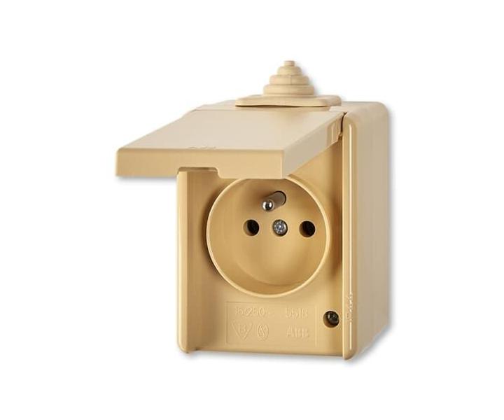 Zásuvka jednonásobná s viečkom, IP44 ABB Praktik 5518-2929 D - béžová