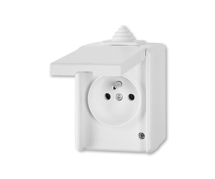 Zásuvka jednonásobná s viečkom, IP44 ABB Praktik 5518-2929 B - biela